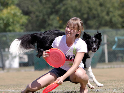 Shortly thereafter in my never-ending quest to get Lok to play, I brought home a 99-cent frisbee from Petsmart. On the first toss he ran and caught it out of the air. I think anyone who has ever watched their dog catch a frisbee for the first time knows what that felt like. There is just something about a dog catching a disc. Even more, there is something about YOUR dog catching a disc YOU threw. And when the dog has refused to play with any other toy up to that point, it feels downright miraculous. We were hooked!